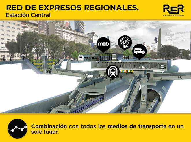 Hoy el sistema de ferrocarriles llega hasta los bordes del macrocentro y sus líneas están desconectadas. El RER enlazará las líneas que vienen desde el SUR (Roca y Belgrano Sur), desde el NORTE (San Martín; Mitre en sus tres ramales: Tigre, Suarez y Mitre; y Belgrano Norte), y desde el OESTE (Sarmiento) generando un gran nodo de conectividad regional.