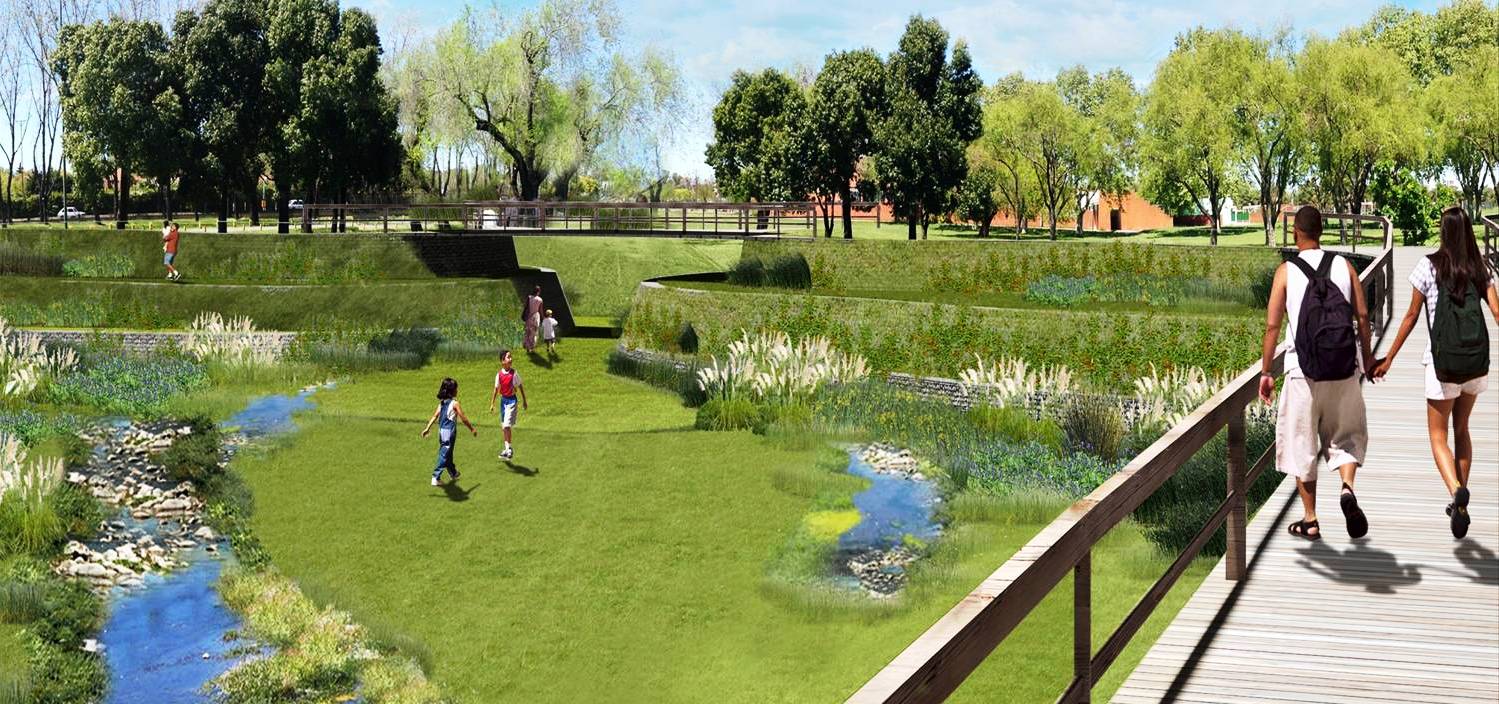 Se escogió Parque Sarmiento para cavarlos porque el mismo está dentro del curso de la cuenca del Arroyo Medrano, que es donde se emplaza la obra. Además, porque cuenta con el espacio disponible para hacer un cuenco de 150.000 metros cúbicos. Los trabajos no afectaron a los vecinos y el parque no permaneció cerrado mientras se llevaron a cabo ya que los reservorios sólo involucran una parte menor de un parque de uso público de 70 hectáreas. El objetivo es que acumulen entre 150.000 y 200.000 metros cúbicos de agua. Por lo tanto, cuando se sature el caño pluvial, el agua irá al cuenco del reservorio.