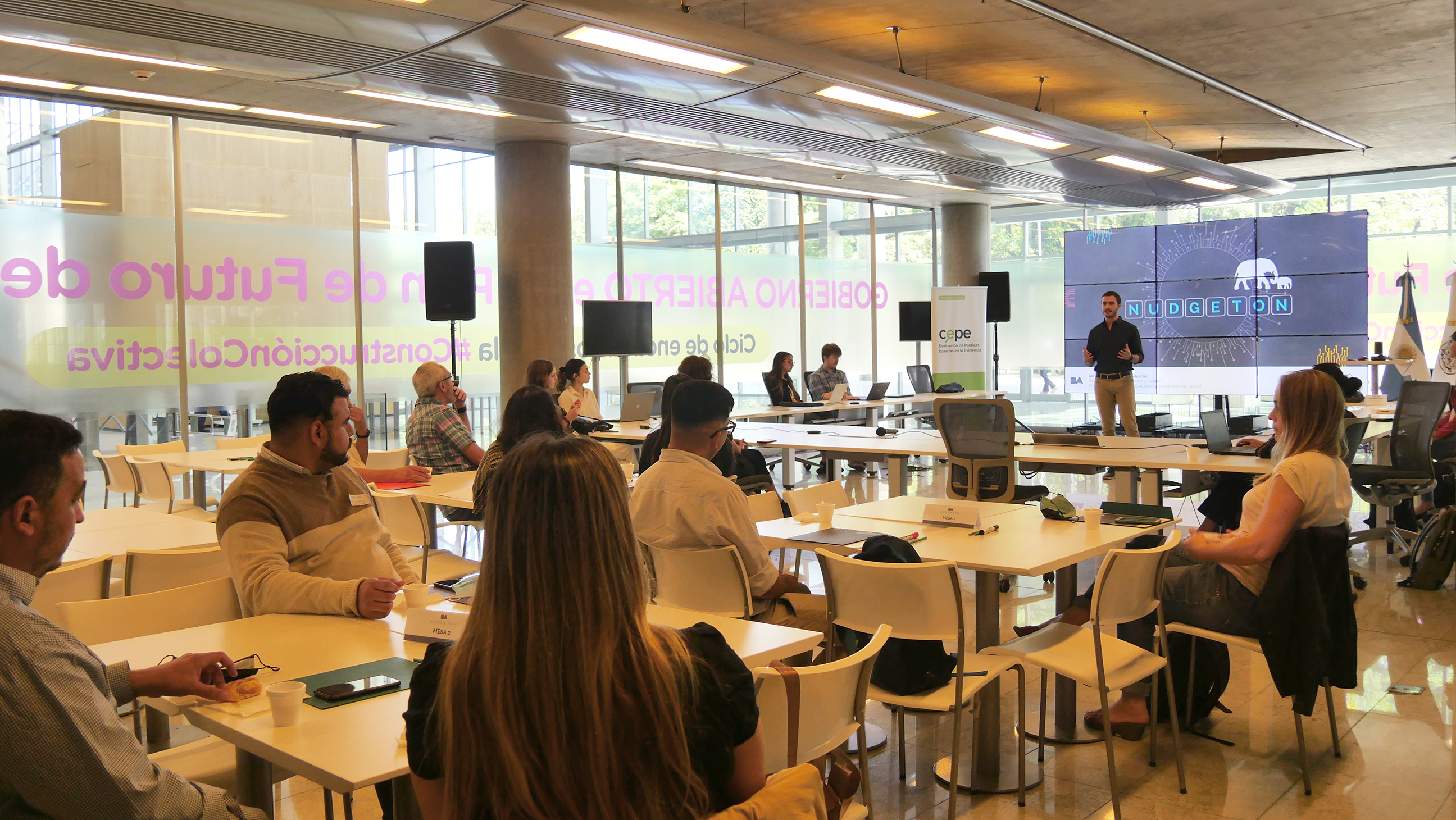 El Nudgetón (palabra que une los conceptos de nudge -empujoncito por su traducción en español- y hackatón) contó con la introducción de Gastón Gertner, director ejecutivo del CEPE Di Tella, y trabajó sobre la propuesta de la Secretaría de Transporte y Obras Públicas presentada por Mariana Ferreira, Gerenta Operativa de Cambio Cultural en Movilidad.