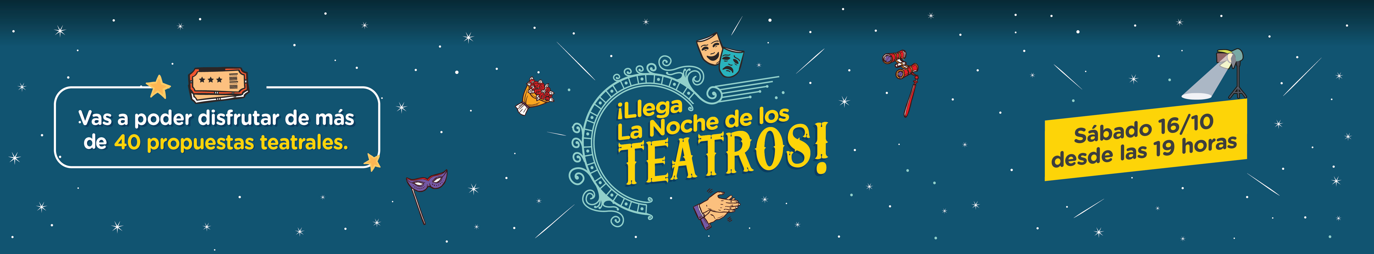 ¡Vuelve la Noche de los Teatros a la Ciudad! Este sábado 16 de octubre, desde las 19 horas y hasta la medianoche, llega la tercera edición de esta iniciativa que ya se realizó en 2016 y 2018. La propuesta incluye más de 40 obras teatrales, a las cuales se puede acceder de forma gratuita o con importantes descuentos que van del 50% al 90%. Sobre la calle Corrientes se ofrecerán shows gratuitos y el Teatro San Martín invitará a todo el público a acceder sin cargo a sus obras programadas.
