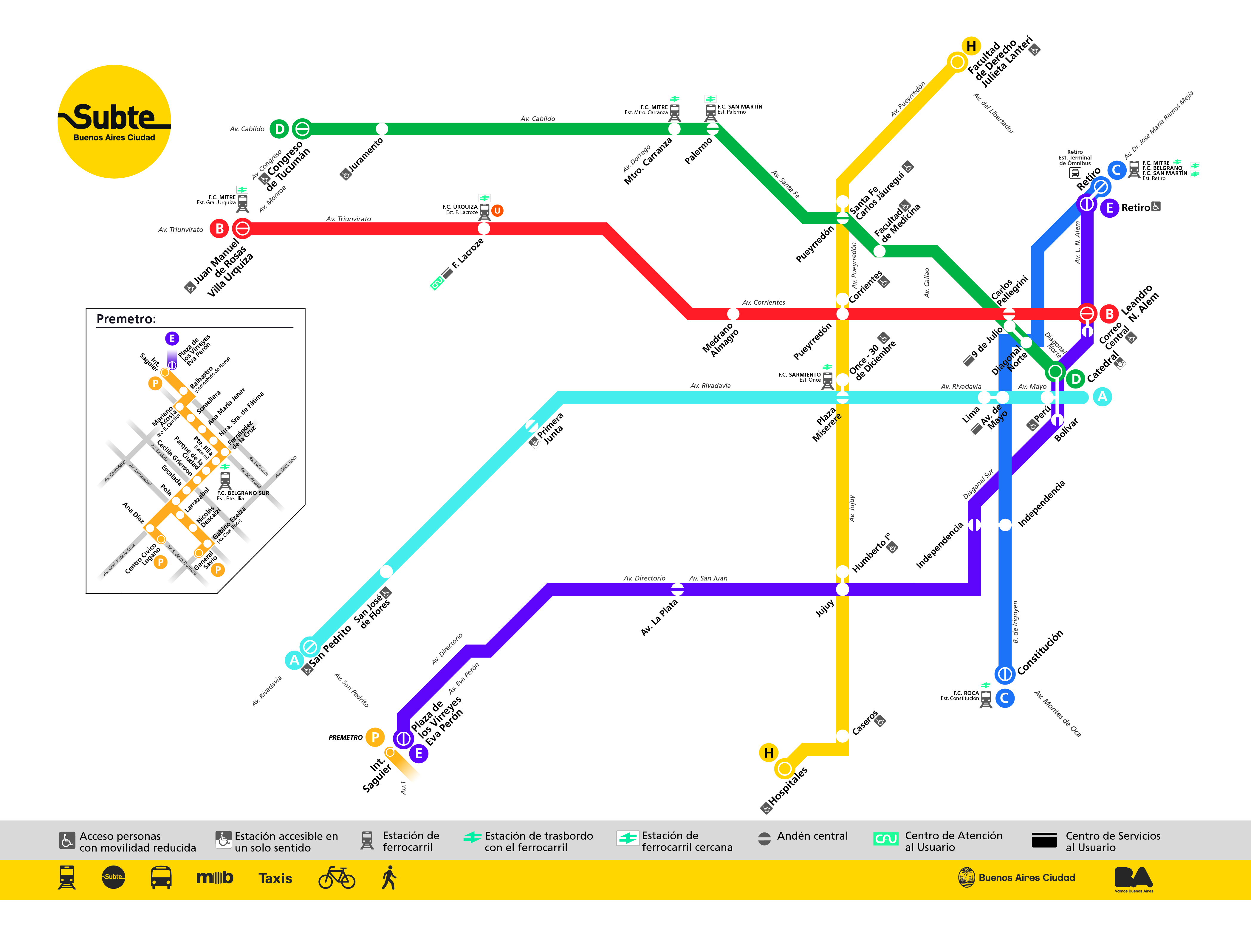Línea E: Retiro, Correo Central, Bolívar, Independencia, Jujuy, Av. La Plata y Plaza de los Virreyes.
